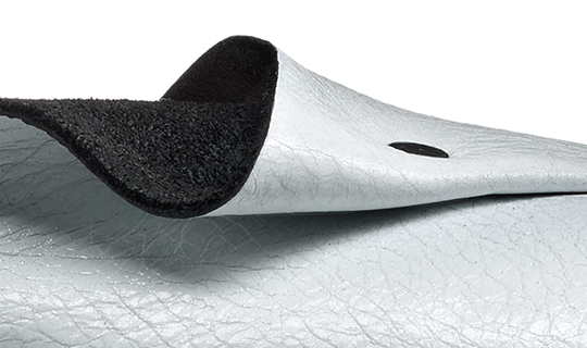Chromgegerbtes Schafsleder mit verschiedenen Deckschichten, in das eine Metallfolie als Zwischeneinlage eingearbeitet wurde. Dadurch ist das Material formbar und dabei gleichzeitig formstabil. Durch die dünne Materialstärke sehr empfindlich. Aufgrund der Gerbung für Chromallergiker ungeeignet.