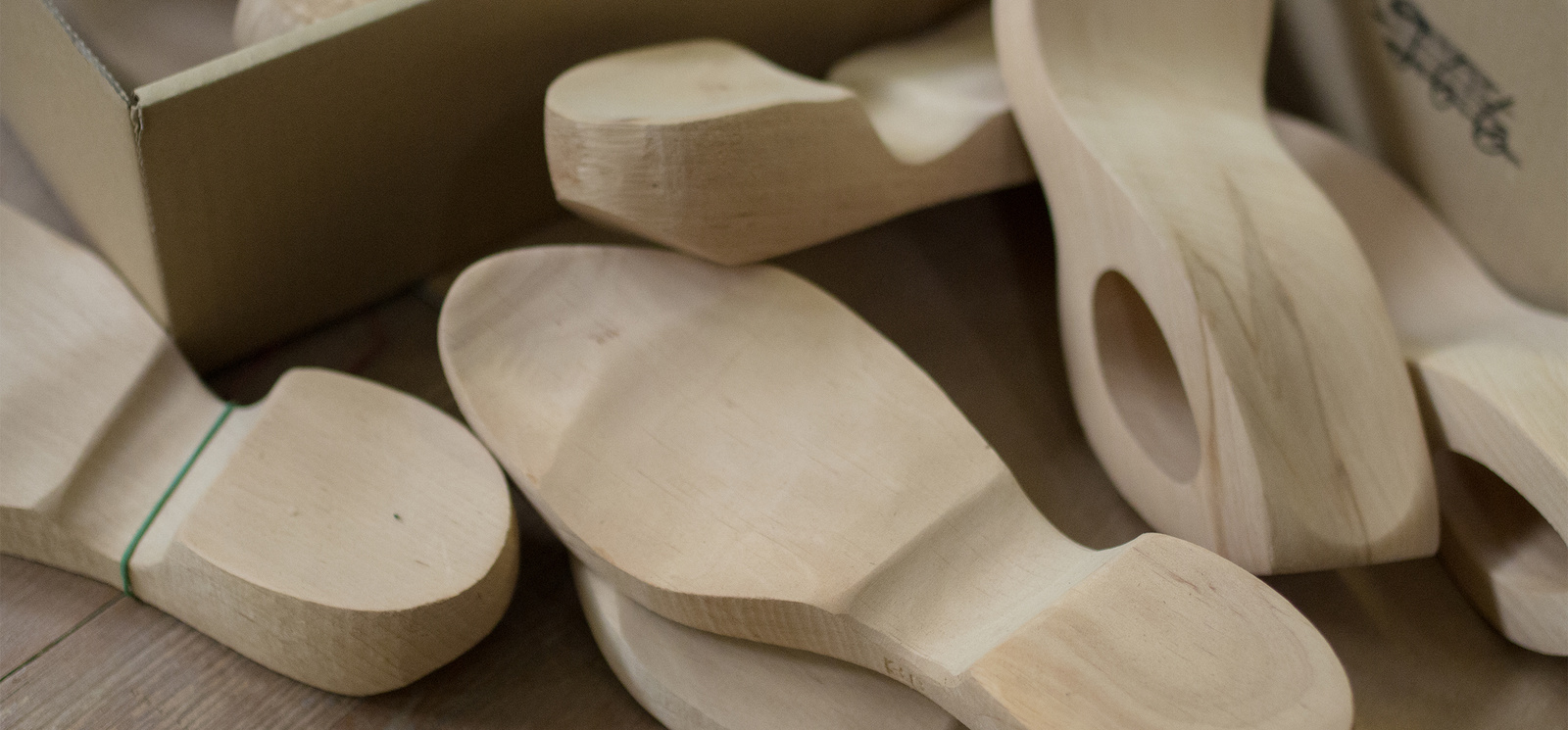 Les semelles en bois ont constitué notre premier terrain d’expérimentation — un matériau renouvelable, issu de ressources européennes.