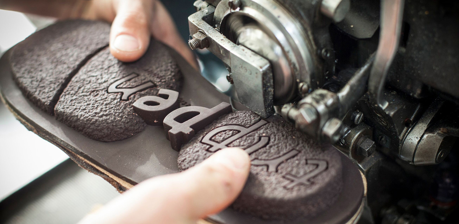 Ce service de réparation connaît un vrai succès : en Allemagne, nous ressemelons en moyenne 20 paires de chaussures par jour, et presque autant au Japon. Au fil des années, nous avons récupéré plusieurs tonnes de semelles usagées, que nous avons récemment commencé à revaloriser en semelles recyclées. Nos semelles en caoutchouc sont fabriquées en Italie.
