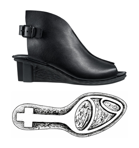 La collection Gritt introduit une nouvelle semelle compensée avec une construction interne alliant confort et fonctionnalité, dans la tradition Closed mais avec plus de hauteur. Comme Closed, la semelle en caoutchouc est cousue à la semelle intermédiaire et à la tige, facilitant le remplacement. Chaque paire comprend une semelle intérieure anatomique en liège recouverte de cuir de veau tanné végétal. Talon: 6 cm.
