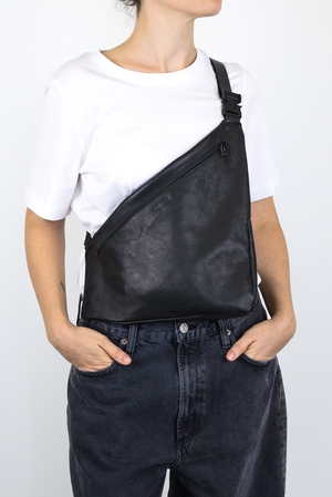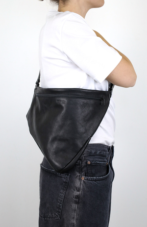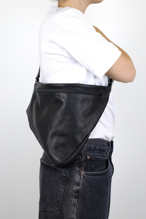 Sac bandoulière souple et léger avec une silhouette asymétrique et un volume créé par des découpes sophistiquées entrelacées. Parfait pour transporter un livre, un carnet ou vos essentiels du quotidien.