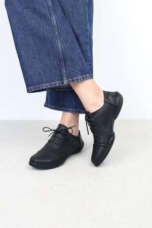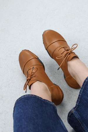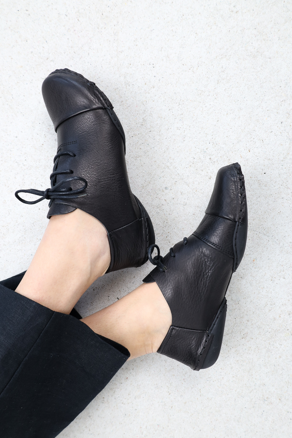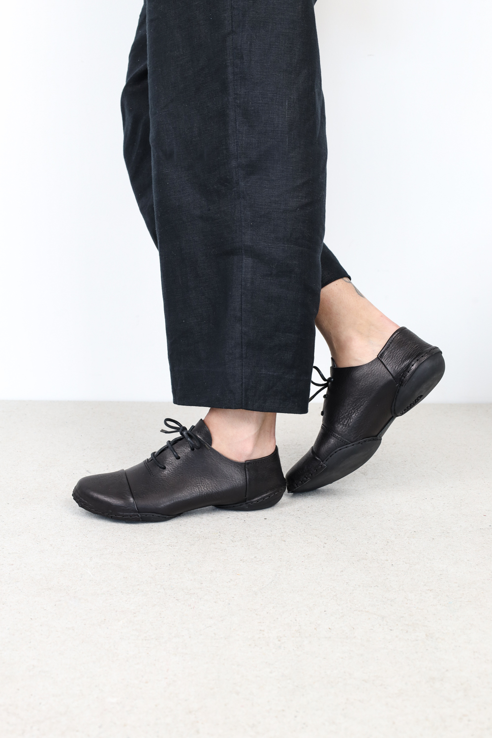 Modèle unisexe classique dont le bout et le talon ne sont pas pincés, mais bordés dans la couture de la semelle.