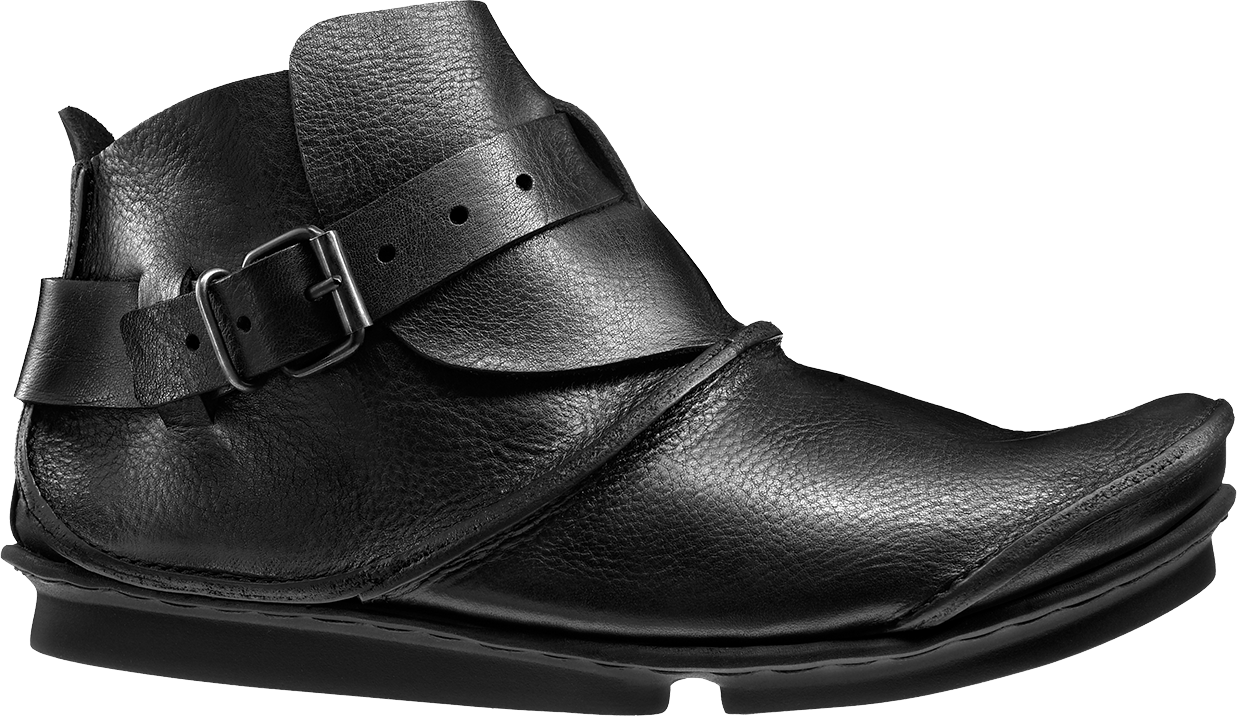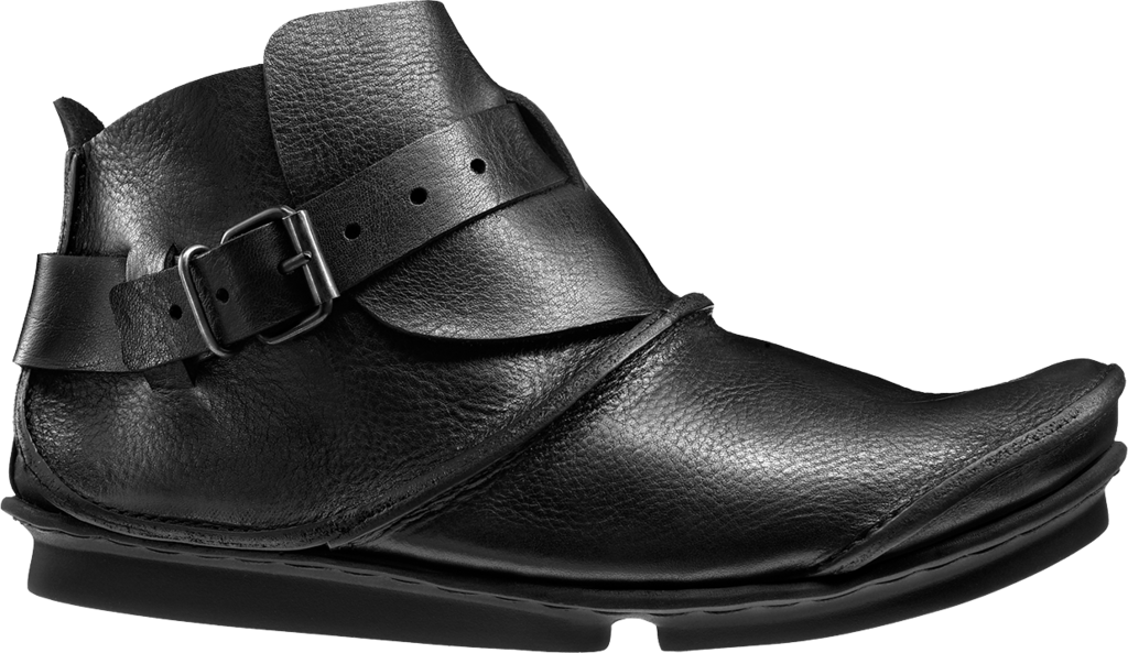 La languette qui se chevauche sur le cou-de-pied et qui est fixée par une lanière rappelle une armure de cuir médiévale.
