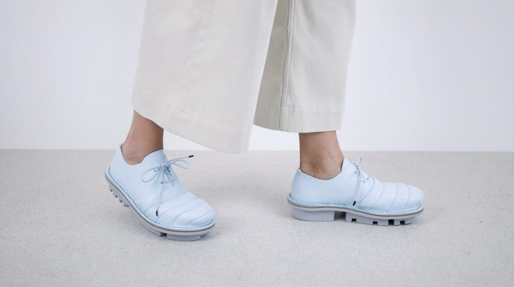 Die feingearbeitete, fliessende Überzeichnung der Kappenpartie gibt diesem Unisex-Schnürschuh eine besondere Silhouette.