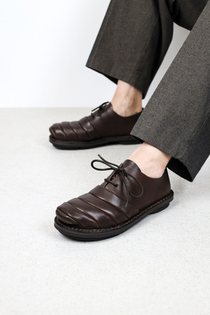 L’exagération fluide et finement travaillée de la partie avant confère à cette chaussure à lacets unisexe une silhouette particulière.