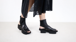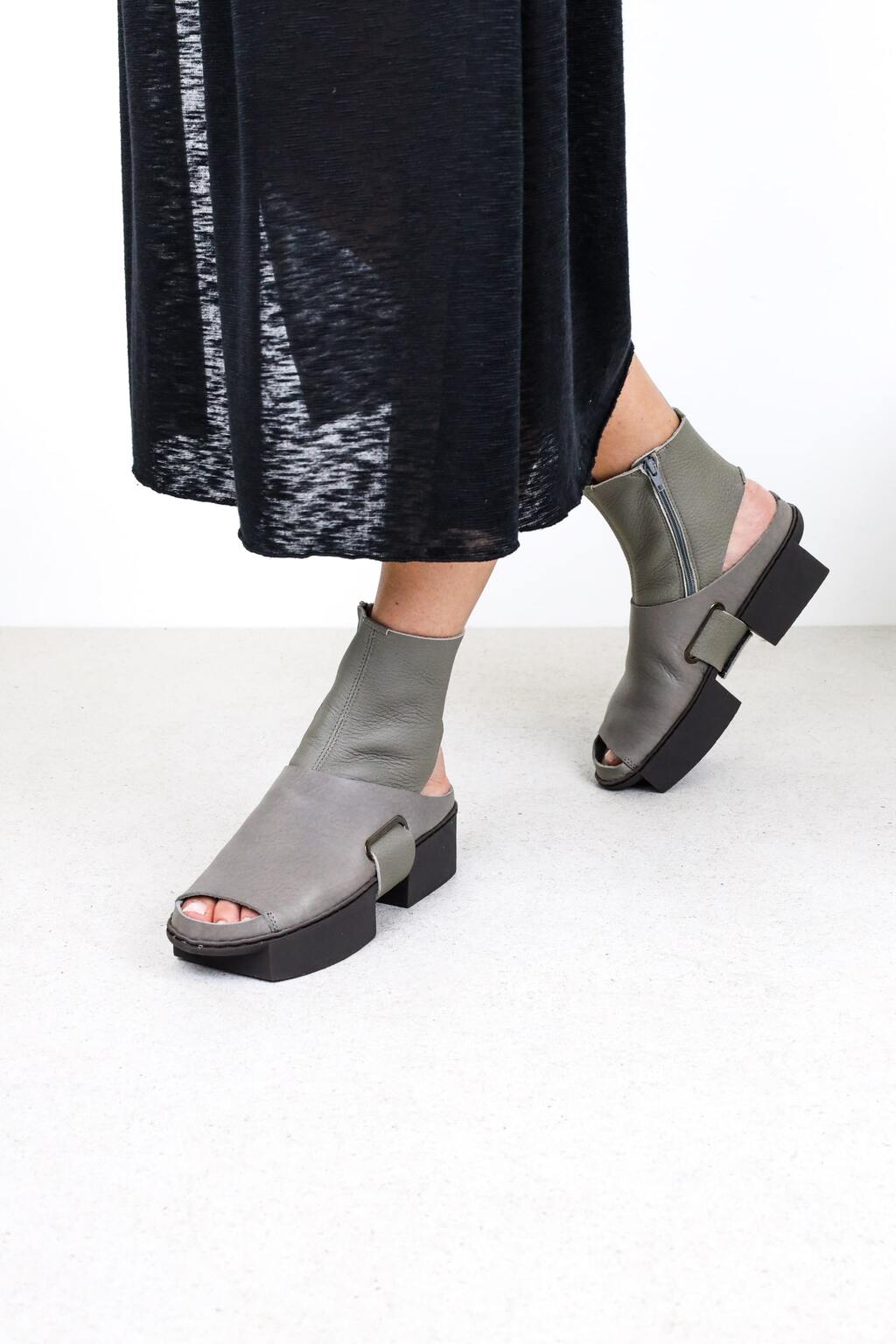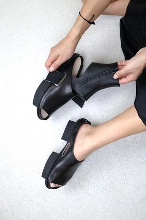 Ce sabot ouvert en cuir robuste est associé à une chaussette amovible en cuir souple et peut se porter avec ou sans la chaussette.