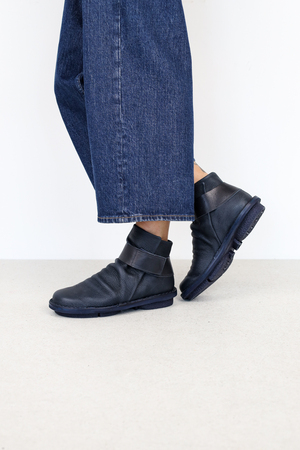 Les parties en cuir souple de cette bottines sont maintenues par une sangle en cuir solide avec fermeture velcro.