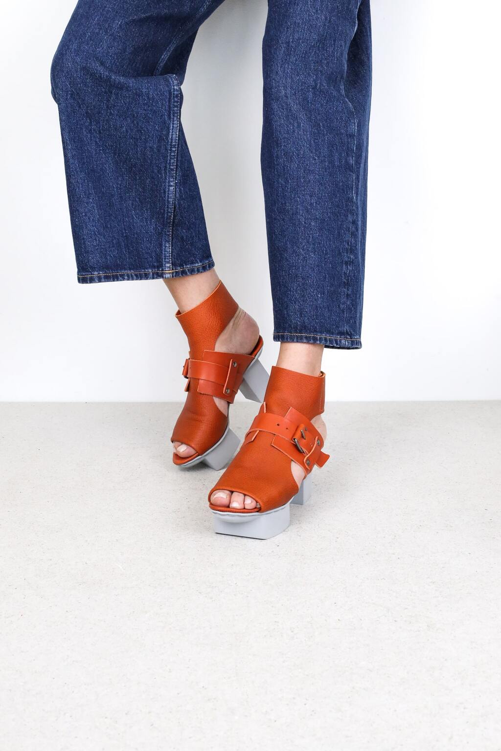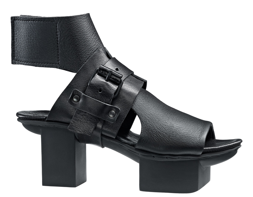 Cette sandale en cuir souple est maintenue par une bride ferme sur le cou-de-pied et autour de la semelle, tandis que le cuir souple enveloppe la cheville et se ferme par une bande auto-agrippante.