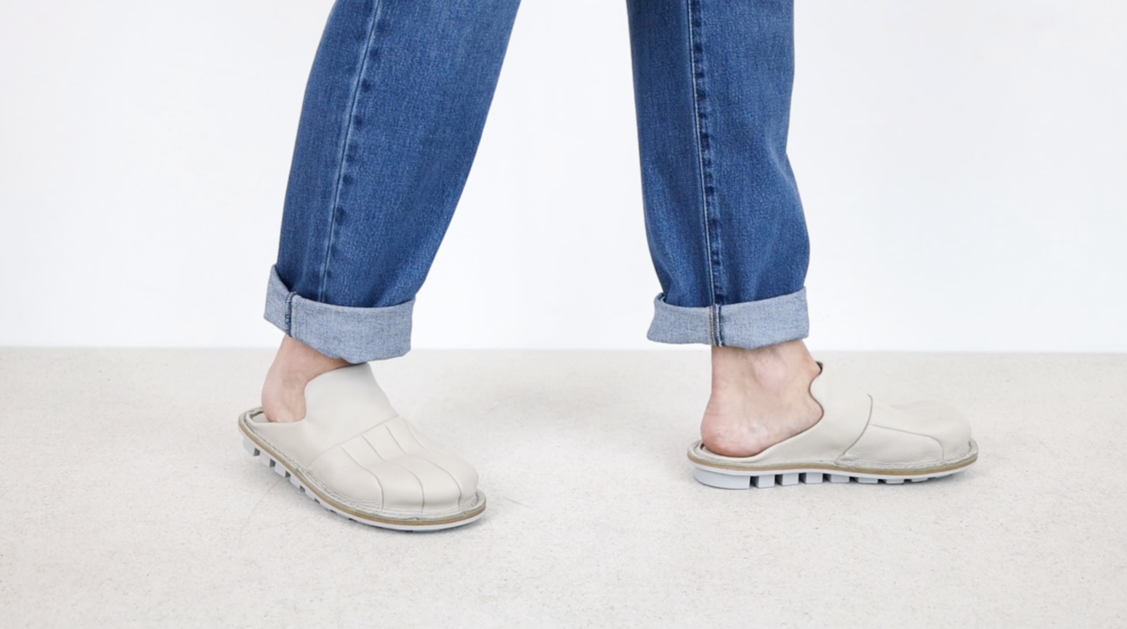 Die feingearbeitete, fliessende Überzeichnung der Kappenpartie gibt dieser Pantolette eine besondere Silhouette.