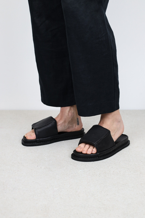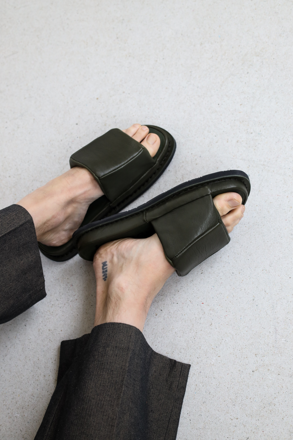 Un mocassin unisexe dans lequel le pied est délicatement enveloppé par un coussin aérien et architectural.