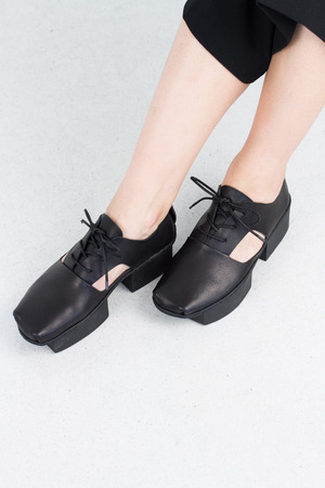 Chaussure basse à plateforme classique à lacets avec des lignes courbes et une découpe à l'extérieur et à l'intérieur de la chaussure