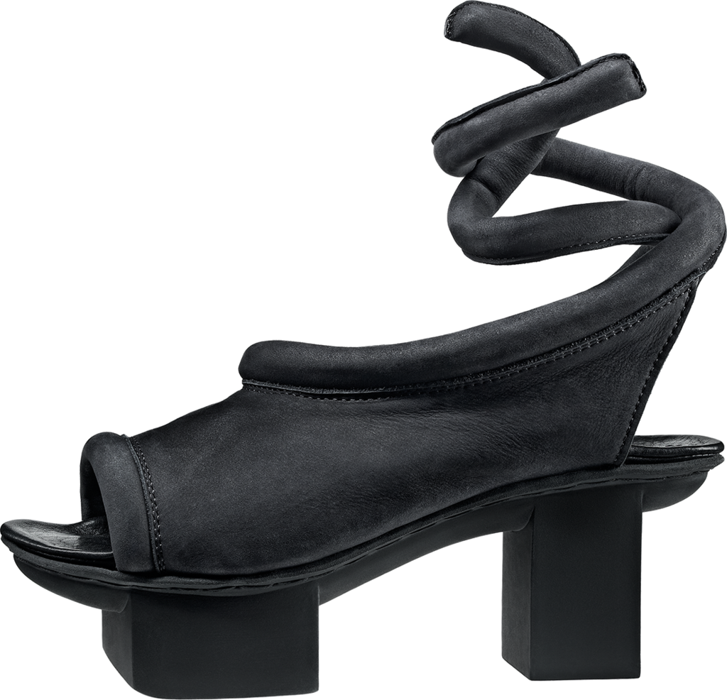 Sandale expérimentale avec un rembourrage arrondi le long des bords, dont les lanières volumineuses peuvent être façonnées avec virtuosité grâce aux raidisseurs incorporés