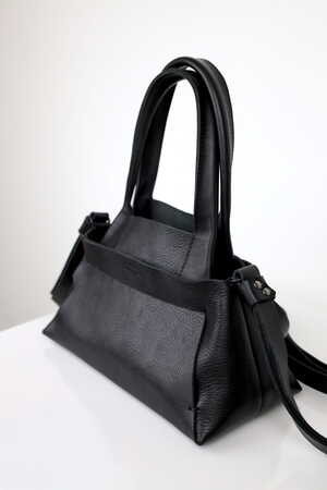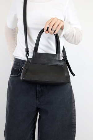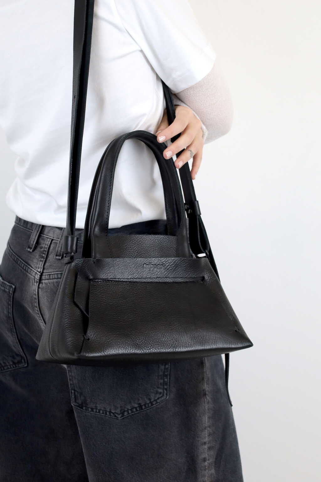 Mini version du sac Origami, ce sac à main partage le même volume géométrique, créé en pliant une seule pièce de cuir sur elle-même à l'aide de la technique Origami. Seules quelques coutures assurent sa fonctionnalité et fixent les poignées. Grâce à sa bandoulière réglable, il peut également être porté en bandoulière.