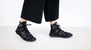 Le deuxième modèle de notre nouvelle tradition de tricotage circulaire est une sneaker à lacets montante à la cheville.