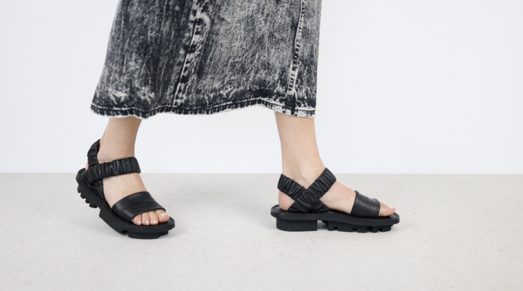 Sandale classique avec une bride en cuir lisse sur l'avant-pied et des élastiques recouverts de cuir sur le cou-de-pied et le talon