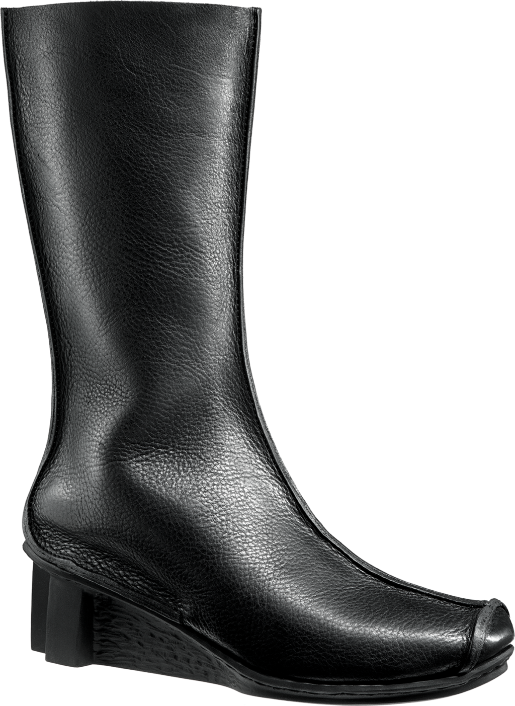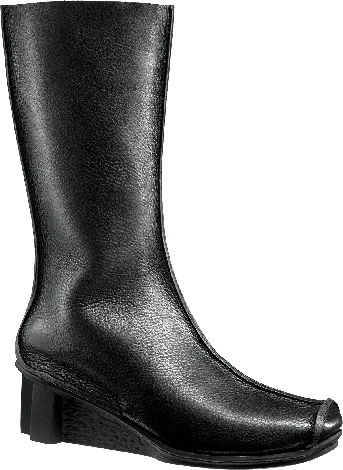 Simple botte mi-haute avec couture centrale et petite pointe carrée.