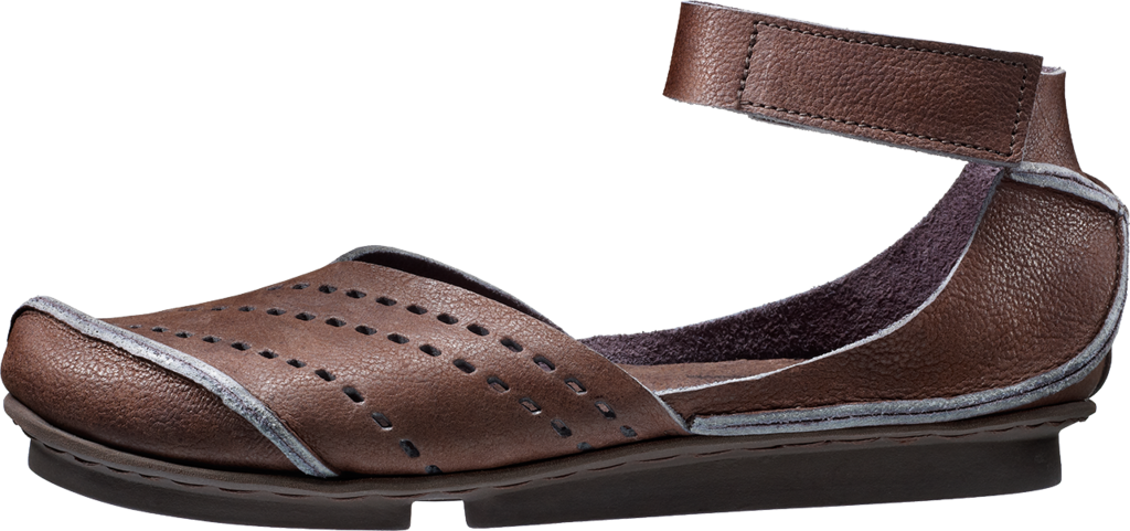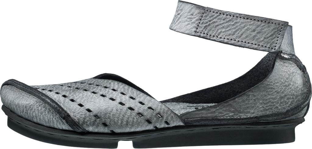 Ballerine de forme légèrement pointue, avec bride à la cheville et fermeture velcro. Des rangées de trous perpendiculaires sur la claque assurent un rafraîchissement agréable