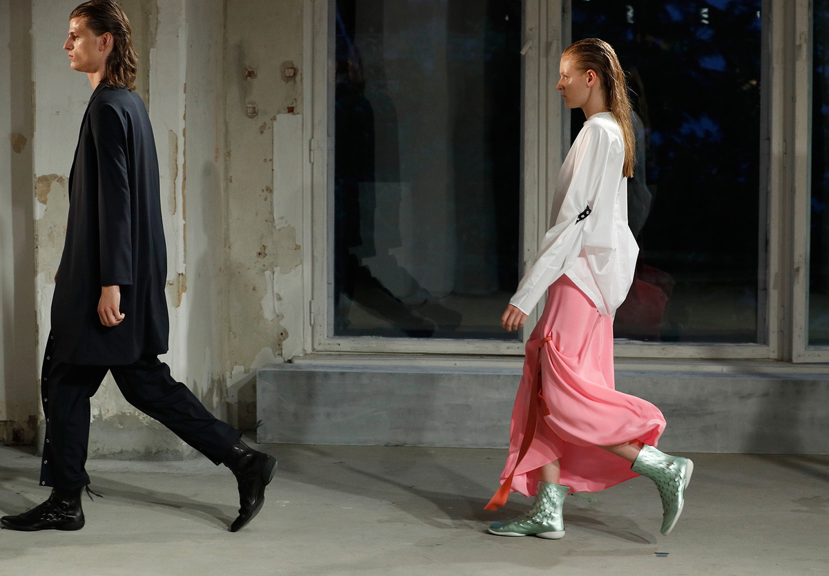 Par cette approche, le designer souhaite brouiller les frontières habituelles de la mode et créer une universalité distincte des paramètres de la mode tels que les saisons,