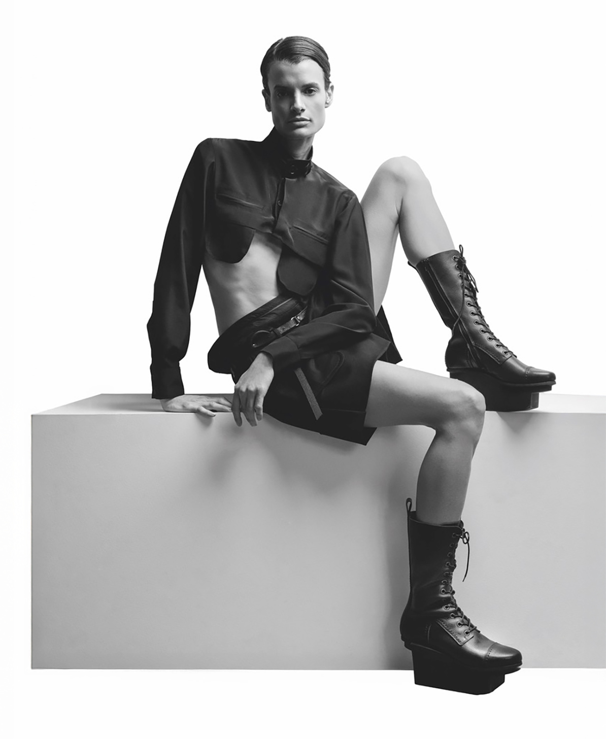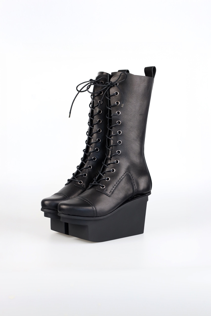 Cette collaboration donne naissance à la "Highrider": une réinterprétation sculpturale et minimaliste de la botte de combat punk,